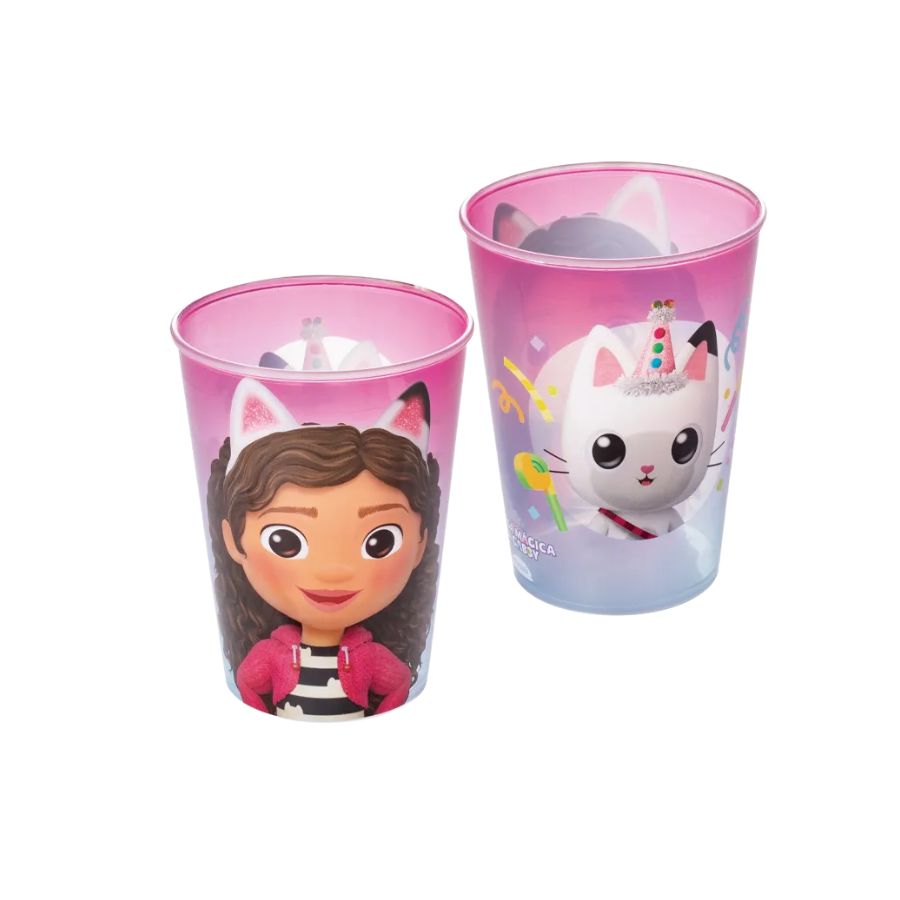 Copo infantil de 320ml com estampa da Gabby, nas cores rosa e roxo. Feito em plástico resistente, leve e ideal para o dia a dia das crianças. Livre de BPA.
