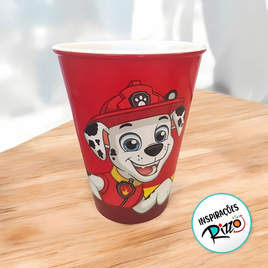 Copo plástico de 270ml, na cor vermelho, com estampa da Patrulha Canina. Ideal para crianças e para tornar as refeições mais animadas e divertidas.