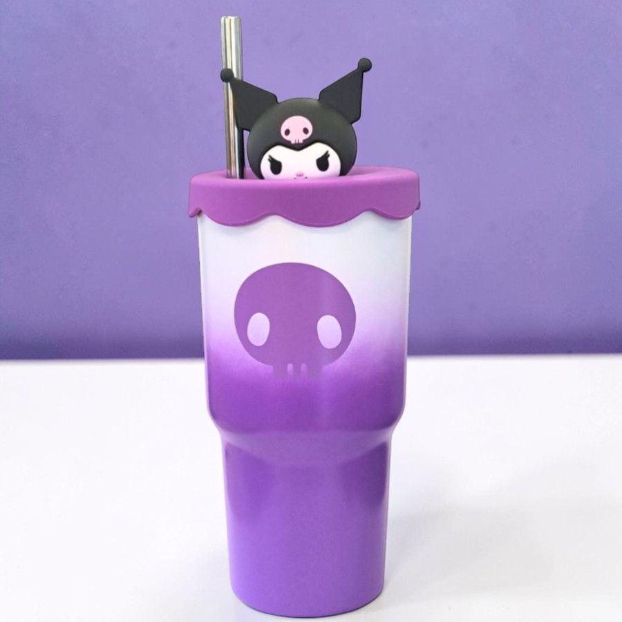 Produzido em aço inoxidável com parede dupla, o Copo Térmico Topper Kuromi ajuda a manter a temperatura da bebida por mais tempo, conservando líquidos gelados por até 8 horas e quentes por até 6 horas. Conta com tampa de silicone e canudo de encaixe em aço inoxidável, trazendo mais praticidade e conforto para o consumo de bebidas quentes ou frias durante o dia. Seu formato funcional e visual marcante fazem dele um excelente acessório para quem busca copo térmico Kuromi, copo com canudo Sanrio ou item estiloso inspirado em Kuromi para acompanhar a rotina com muito mais personalidade.