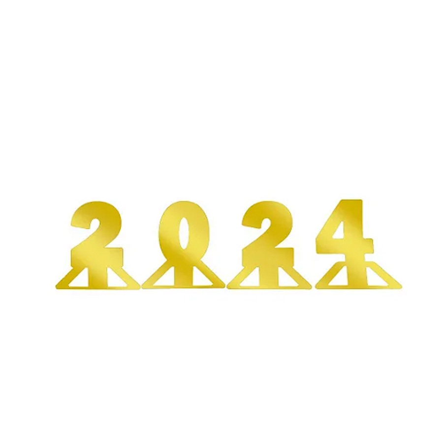 4 Placas de papel Metalizado com uma base pra ficar em pé, conseguindo formar "2024" com elas