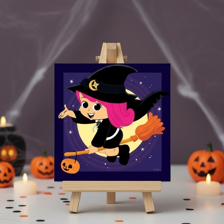 O Display de Mesa com Cavalete em MDF – Bruxinha – 27x20cm é aquele statement piece que entrega personalidade instantânea à decoração. Com arte em estilo lúdico e estética super charmosa, ele cria uma vibe mágica e acolhedora para mesas temáticas, recepções, vitrines, eventos infantis e produções sazonais.