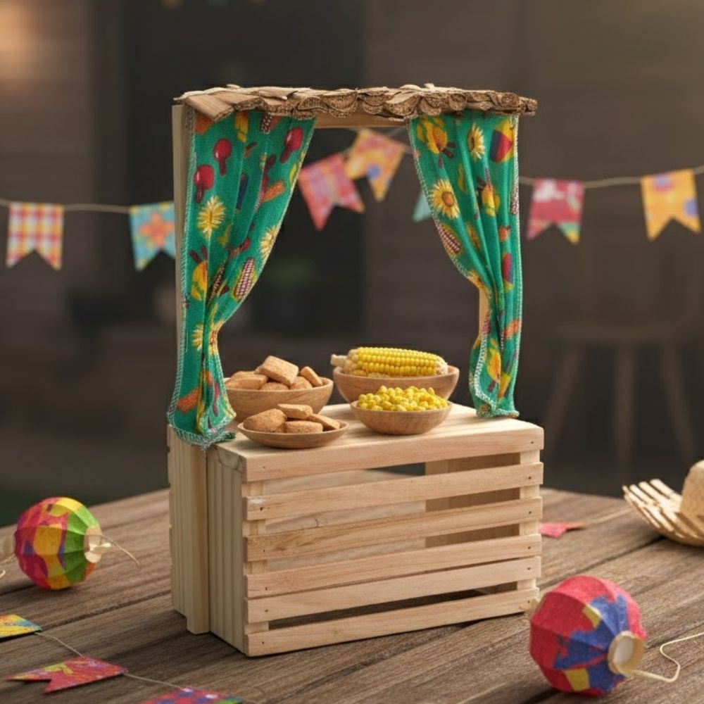 Use como destaque na mesa principal ou no cantinho dos doces. Combine com bandeirinhas, toalhas xadrez e mini enfeites juninos para criar um cenário completo e encantador de São João.