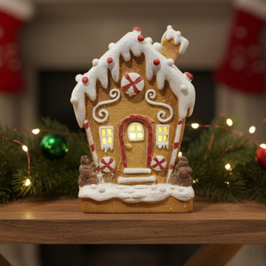 O Enfeite De Natal em Resina - Casa De Ginger Bread Com LED - 23x15x12cm é uma peça temática encantadora, perfeita para decorar ambientes natalinos com charme e originalidade. Produzido em resina de alta qualidade, apresenta uma casa decorada com detalhes festivos e iluminada por LED de cor quente, proporcionando um brilho acolhedor e um efeito visual sofisticado. Funciona com 3 pilhas AAA (não inclusas), tornando seu uso prático e seguro em qualquer espaço.