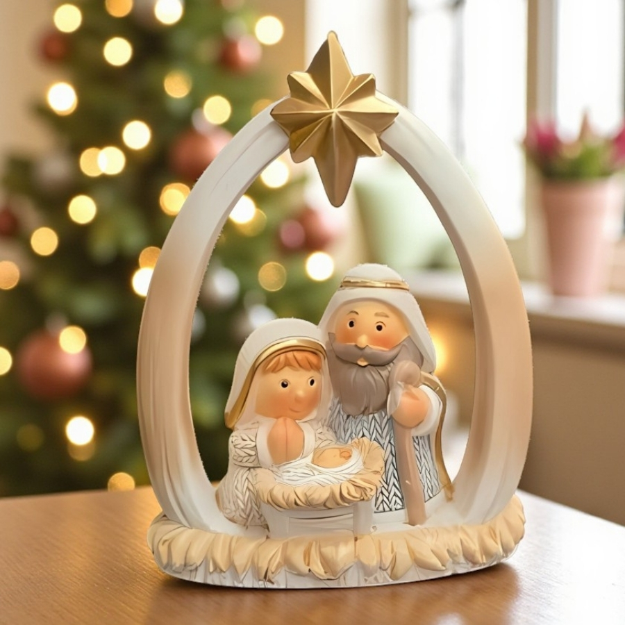 Compacta e refinada, essa peça é indicada para quem deseja decorar espaços pequenos com significado. Além de valorizar mesas, aparadores ou prateleiras, ela reforça a mensagem de união e esperança, tornando o ambiente acolhedor e especial durante as festas de fim de ano.