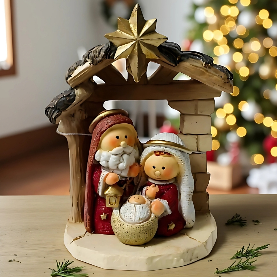 Compacta e detalhada, essa decoração é indicada para presépios, mesas, aparadores ou prateleiras. Além de valorizar o ambiente, transmite a mensagem de união, amor e esperança, tornando o Natal ainda mais especial para toda a família.