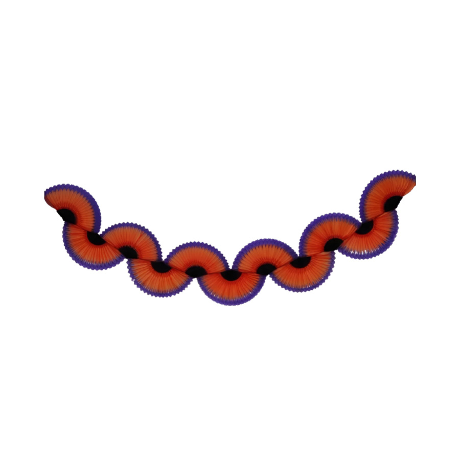 Guirlanda decorativa de Halloween, possui cores Laranja, Preto e Roxo.