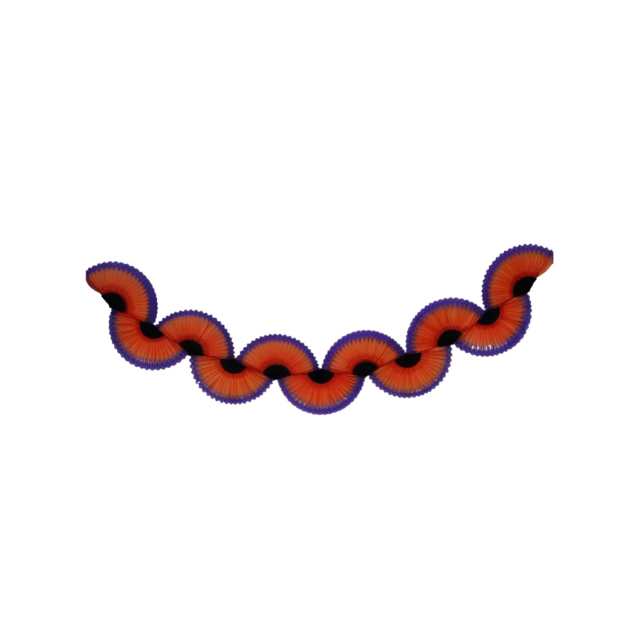 Guirlanda decorativa de Halloween, possui cores Laranja, Preto e Roxo.