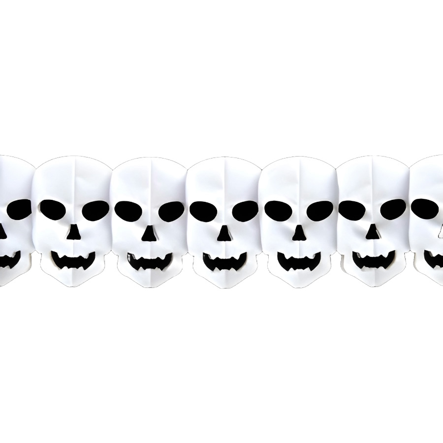 Guirlanda decorativa de Halloween em formato de Caveiras. Cor Branca.