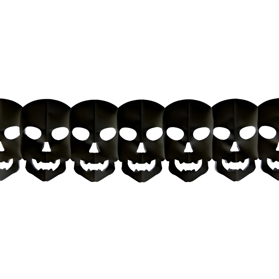 Guirlanda decorativa de Halloween em formato de Caveiras. Cor Preta.
