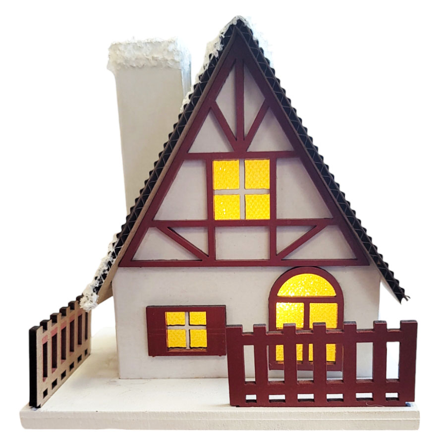 Mini casa decorativa, com led imitando estarem acesas as luzes internas.