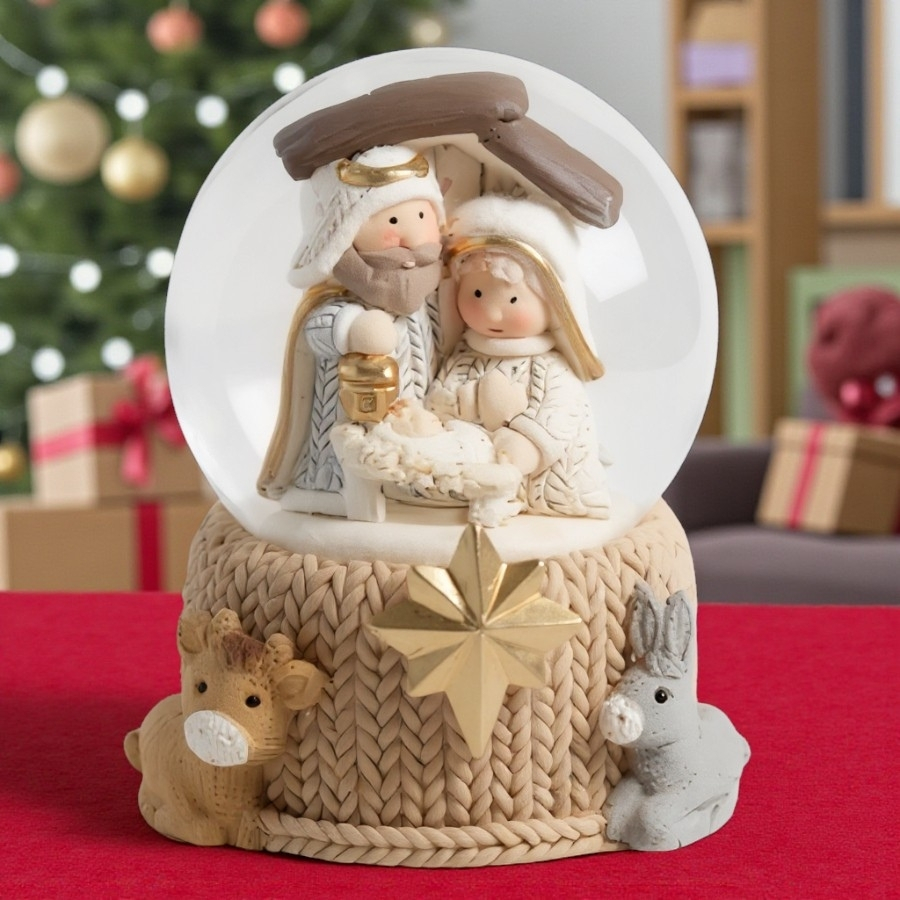 Compacto e detalhado, esse enfeite é ideal para quem busca decorações natalinas com significado, reunindo o encanto do globo de neve com a representação da Sagrada Família. Ele transmite mensagens de amor, união e espiritualidade, tornando o ambiente mais acolhedor e cheio do espírito natalino.