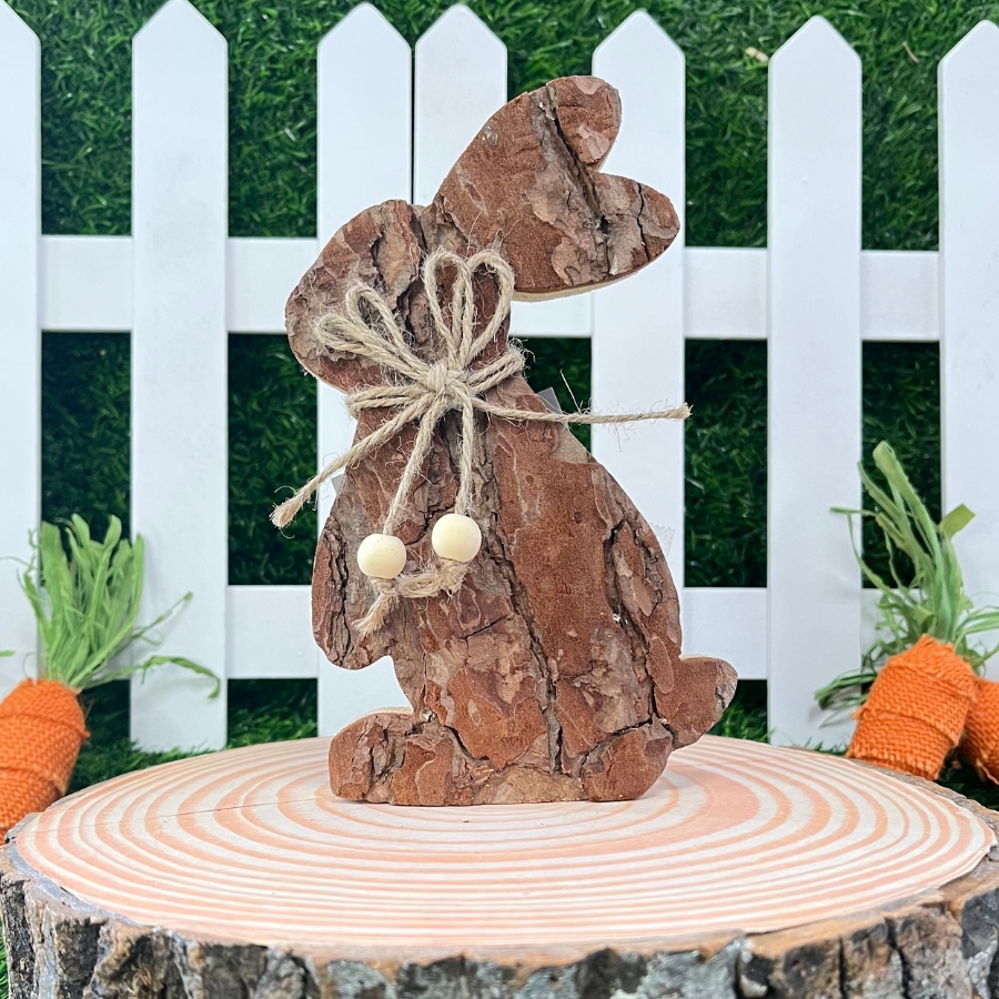 O Enfeite Decorativo de Páscoa Coelho de Madeira em Pé - 18,5cm é uma peça encantadora que traz charme e delicadeza para a decoração temática, com um design rústico e sofisticado.