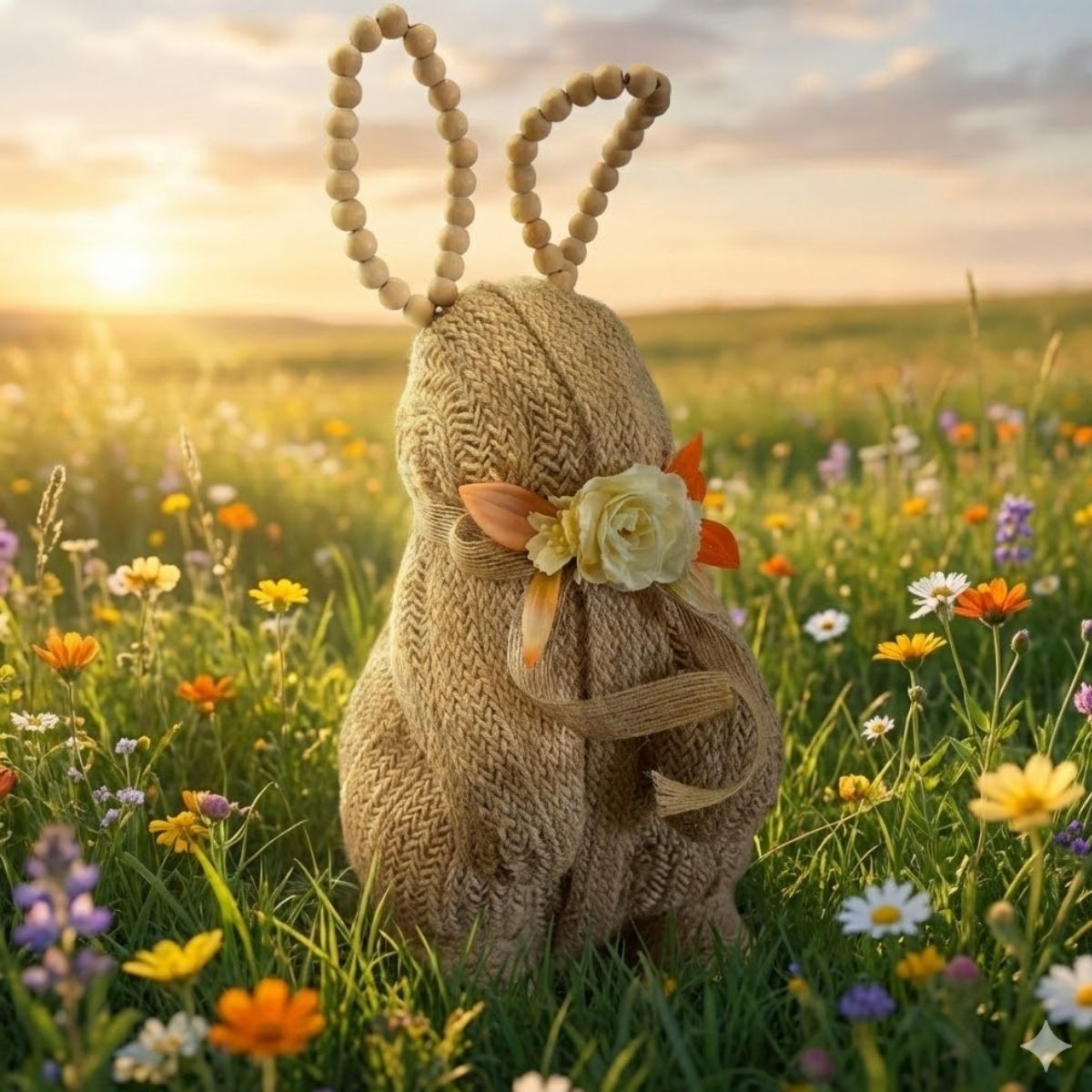 O Enfeite Decorativo de Páscoa no formato de coelho de palha é uma excelente escolha para quem busca uma decoração mais imponente, mantendo o estilo rústico e delicado da data. O destaque fica por conta da flor branca amarrada ao redor do pescoço, que adiciona suavidade e charme ao visual, criando uma peça acolhedora e cheia de personalidade.