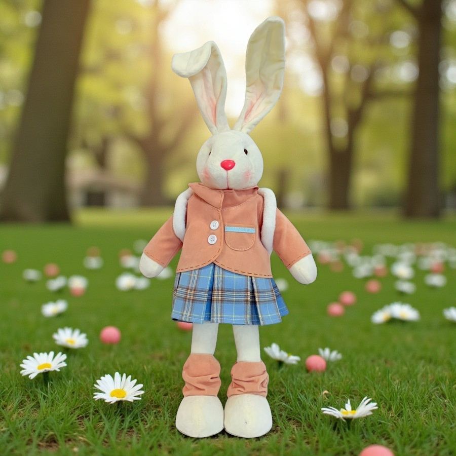 O Enfeite Decorativo de Páscoa mede 51cm, apresentando coelho em pé com saia xadrez e bolsa. Fabricado com materiais resistentes e acabamento detalhado, é leve e fácil de posicionar em diferentes ambientes. Ideal para decoração de mesas, vitrines ou cantinhos temáticos de Páscoa, agregando estilo e delicadeza.