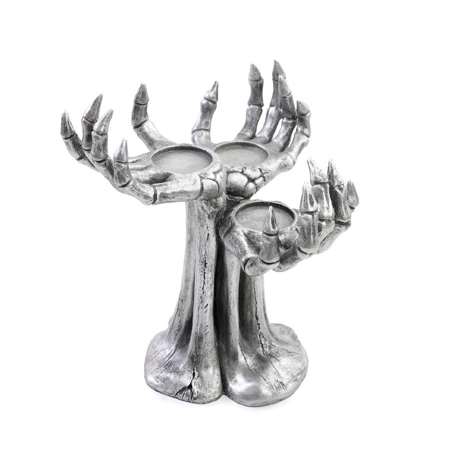Coloque-o em destaque e deixe as velas projetarem sombras sinistras, criando uma atmosfera sombria para a sua festa. Adicione ao seu Halloween o Castiçal Mãos Sombrias.