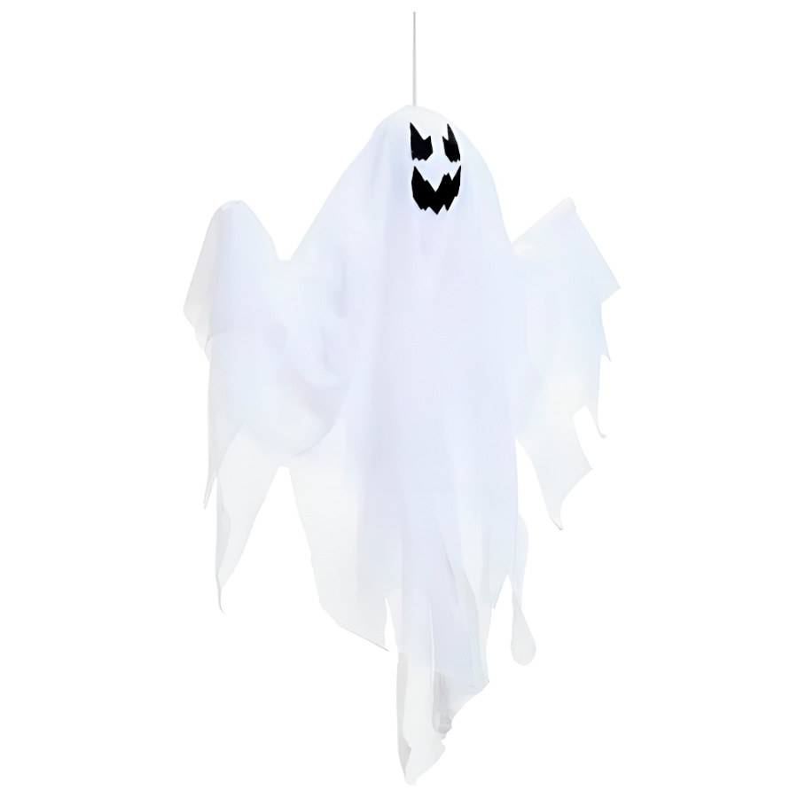 Fantasma decorativo de Halloween, possui cor branca e mede 50cm.