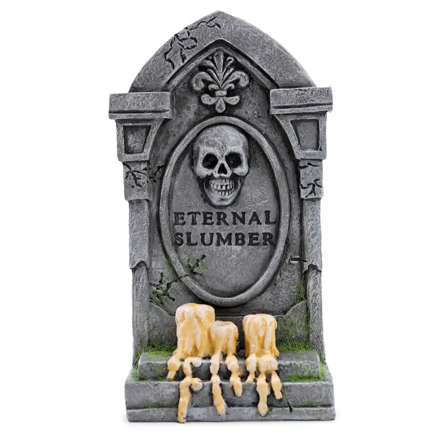 Eleve a atmosfera de Halloween com nossa Lapide com Velas de 21 cm. Um enfeite sombrio que cria um ambiente misterioso. Com luzes que proporcionam um brilho sinistro à noite, esta lapide é a escolha ideal para adicionar um toque assustador à sua decoração de Halloween.