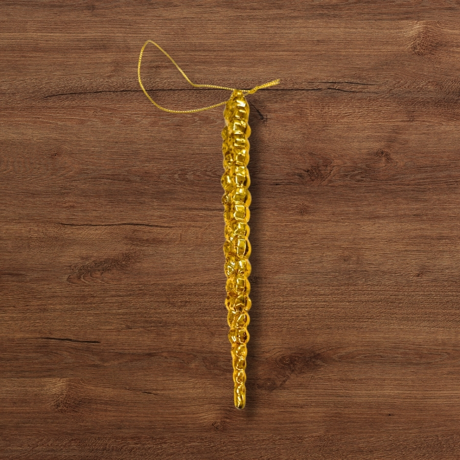 Enfeite para pendurar em árvore ou decoração de Natal, no formato de estalactite espiral, com acabamento em ouro. Mede 17,5x1,5x1cm, é leve, resistente e fácil de aplicar, ideal para criar efeitos sutis e sofisticados em ambientes internos.
