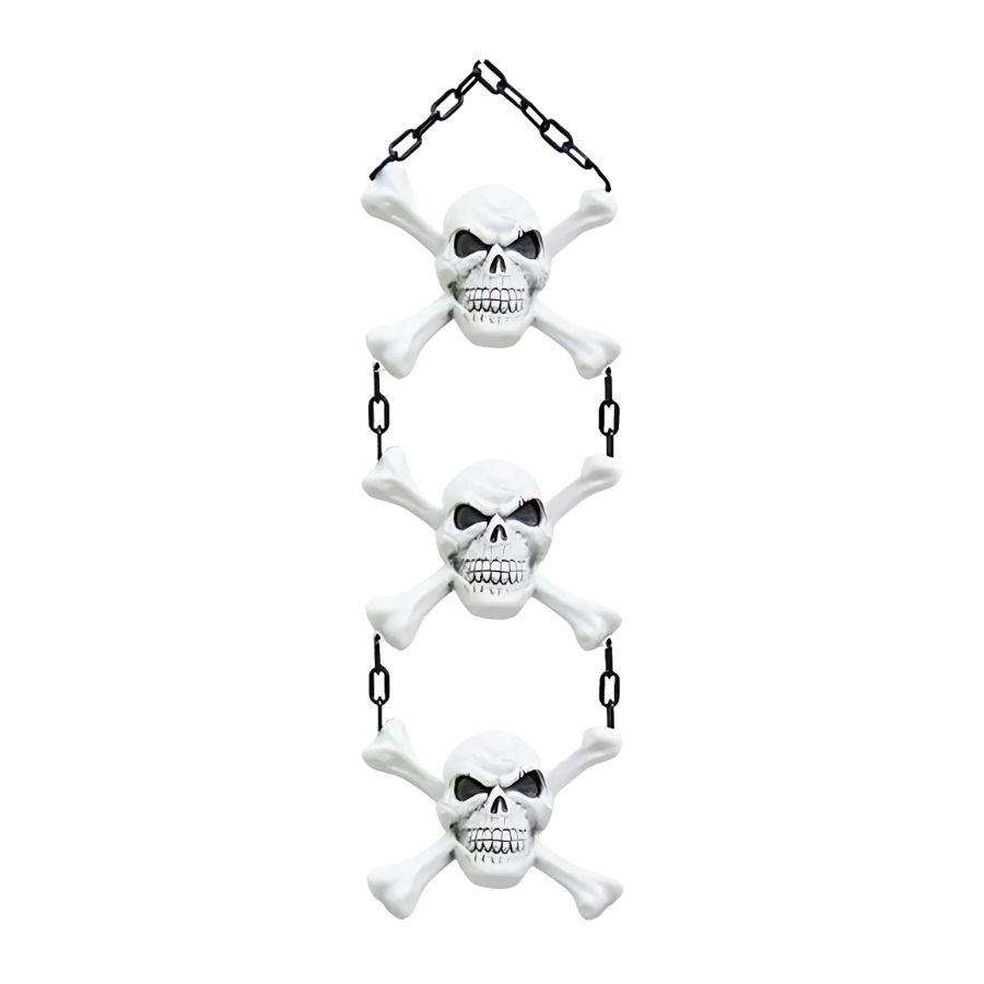 O Enfeite para Pendurar - Caveira x Alfa Pirata - Halloween é ideal para criar uma decoração temática assustadora e divertida. Com design de caveira pirata, esse item chama a atenção com seus detalhes sombrios, sendo perfeito para pendurar em entradas, varandas ou ambientes internos durante festas de Halloween.