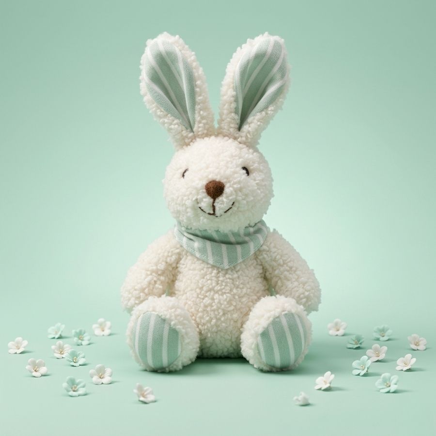 Enfeite decorativo de Páscoa para pendurar em formato de coelho com lenço na cor verde, medindo aproximadamente 15x7cm, ideal para decorar árvores de Páscoa, galhos, cestas e arranjos temáticos.