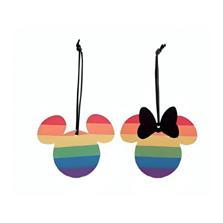 Enfeite de pendurar com orelhas Mickey e Minnie, nas cores do arco-íris.