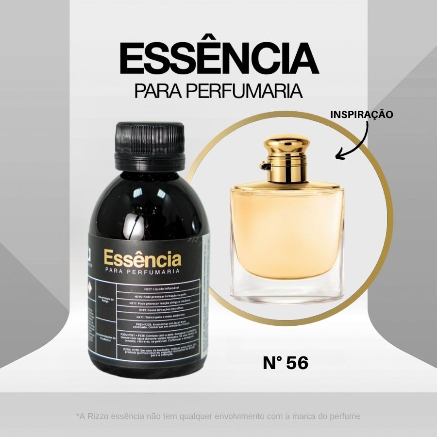 A Essência Ralph Woman Concentrada para Perfumaria N°56 é uma fragrância feminina elegante e delicada, que combina notas florais, frutadas e amadeiradas para criar um aroma sofisticado e marcante. Inspirada no perfume Ralph Woman, essa essência é ideal para a produção de cosméticos artesanais que ressaltam a feminilidade e o charme. Indicada exclusivamente para formulações de perfumes, body splash, loções corporais e desodorantes femininos, a Ralph Woman N°56 oferece excelente fixação e aroma duradouro, garantindo produtos artesanais de alta qualidade e apelo comercial.