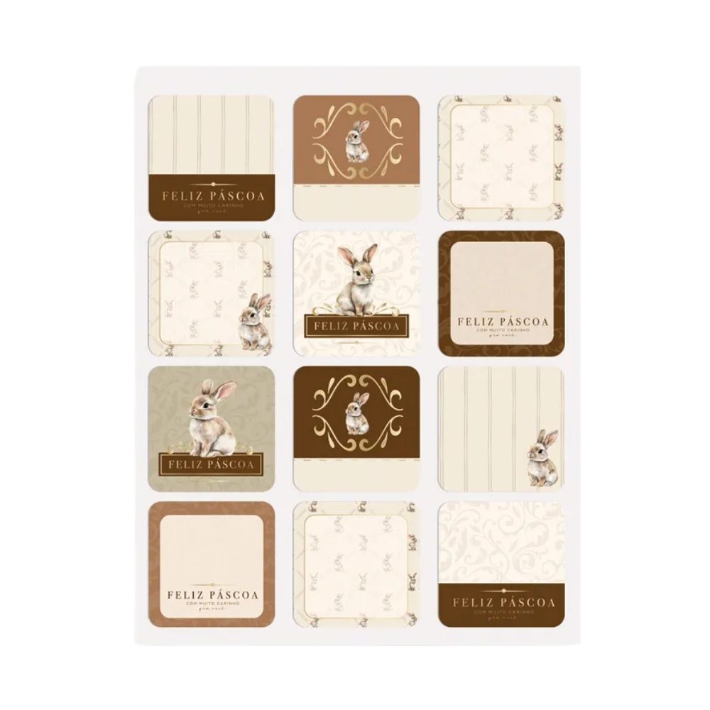 As etiquetas adesivas da linha Classique Bunny são perfeitas para finalizar embalagens de Páscoa com elegância e delicadeza. Com tamanho de 4x4cm, apresentam lindos elementos da linha Classique Bunny, como o coelhinho característico e detalhes clássicos que remetem a um visual sofisticado, acolhedor e atemporal.