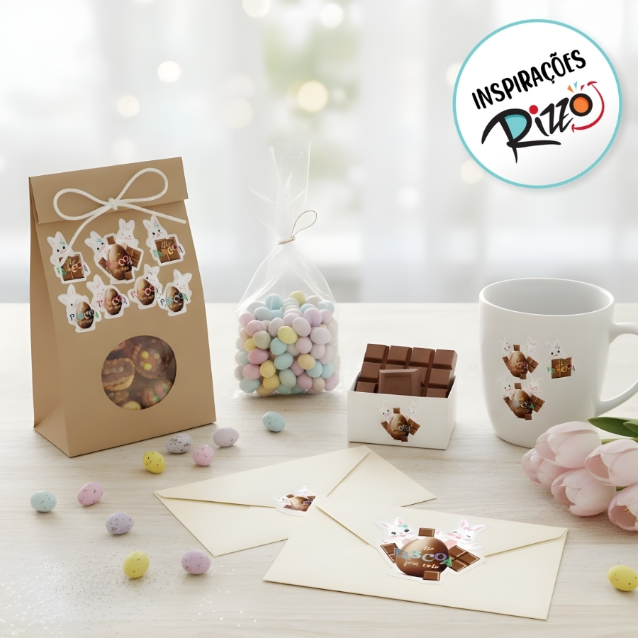 Indicada para chocolaterias, confeitarias, lojas de presentes e produção artesanal, esta etiqueta resolve a necessidade de decorar e identificar embalagens de forma prática e eficiente. O tamanho de 7x6cm proporciona boa visibilidade da estampa, contribuindo para uma finalização mais profissional e alinhada à temática pascal.