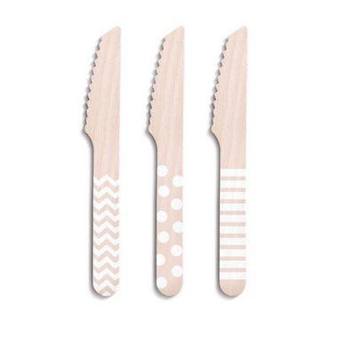 Faca de Madeira Decorada Branco - 08 unidades - Cromus - Rizzo
