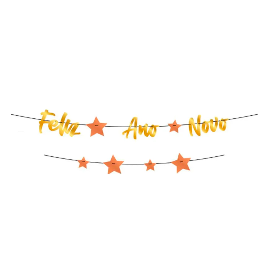 Dê as boas-vindas ao novo ano com esta deslumbrante faixa "Feliz Ano Novo". Em tom de cobre glamoroso, ela não apenas adiciona um toque festivo ao ambiente, mas também incorpora decorações exclusivas que elevam a atmosfera da celebração.