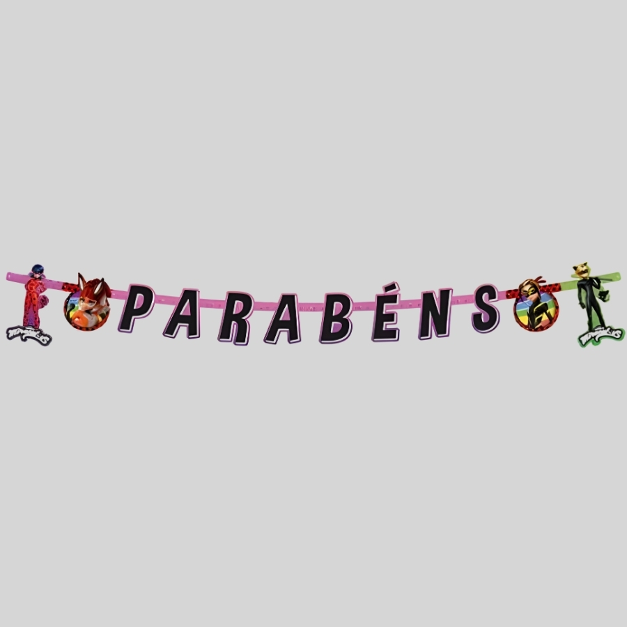 Produzida em material resistente e de fácil instalação, a faixa pode ser usada para decorar paredes, painéis, mesas de bolo ou entradas de festas. Seu design moderno e marcante traz o universo de Ladybug diretamente para a celebração, encantando crianças e adultos e tornando o ambiente mais imersivo e festivo.