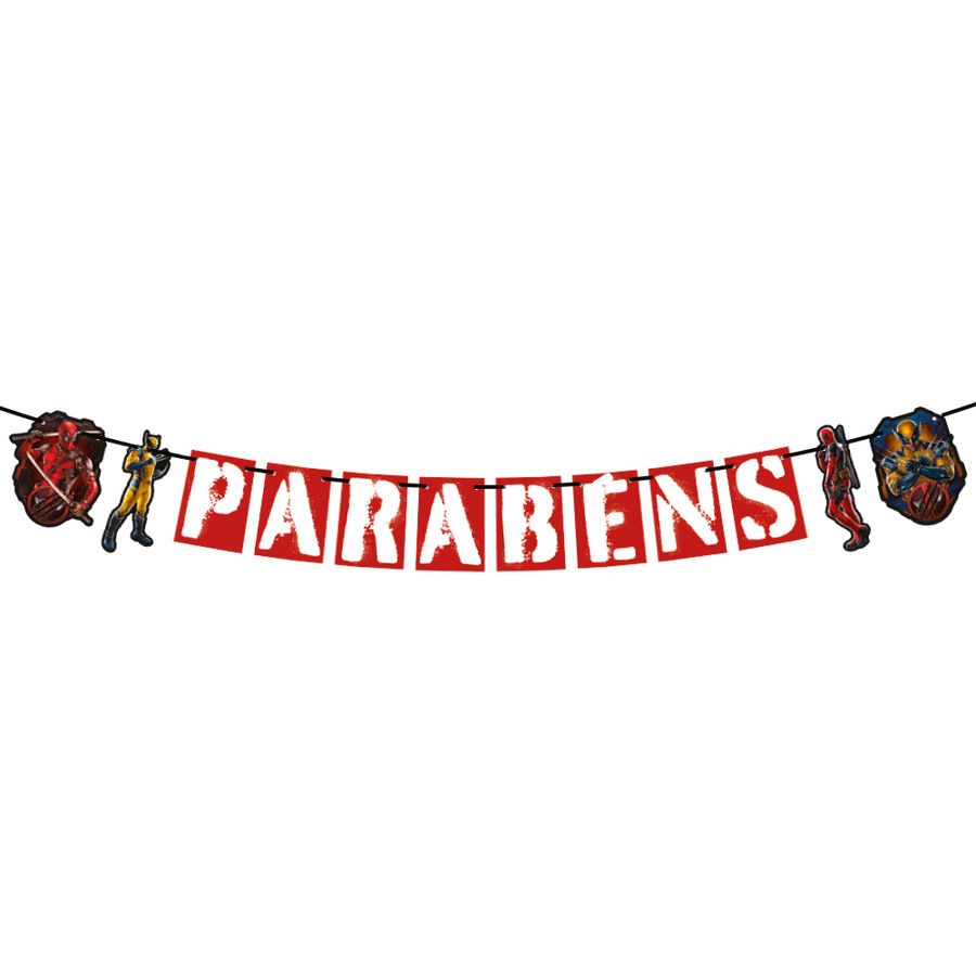 Com seu design vibrante e divertido, a faixa é perfeita para destacar o momento especial e deixar a festa ainda mais divertida. Transforme a sua comemoração em um evento inesquecível com a Faixa Parabéns Deadpool!