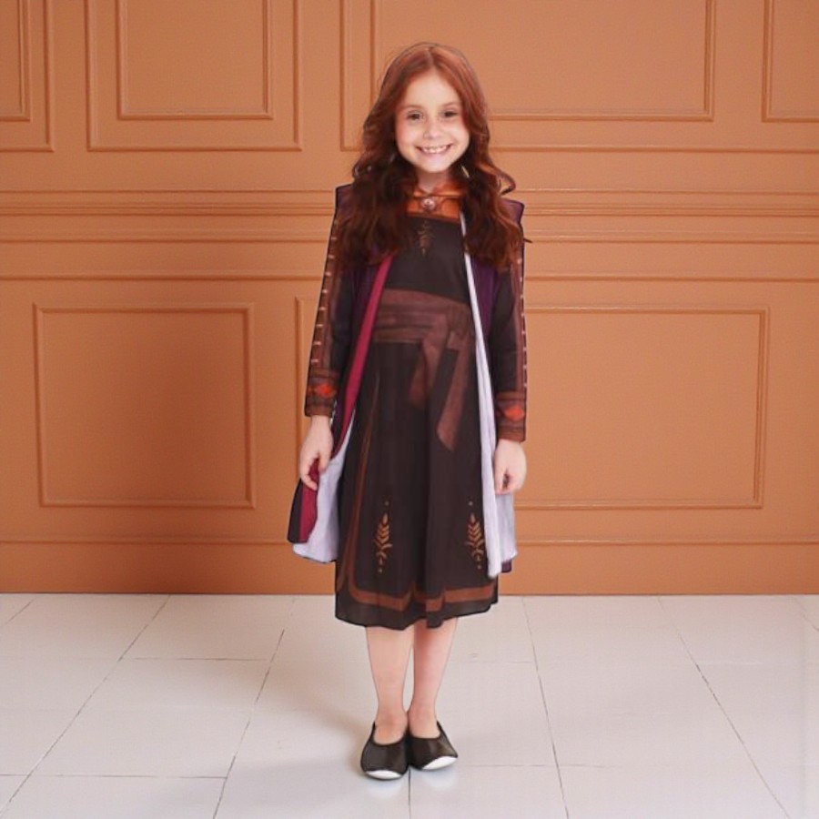 Fantasia Infantil modelo vestido com capa inspirada em Anna Frozen Disney