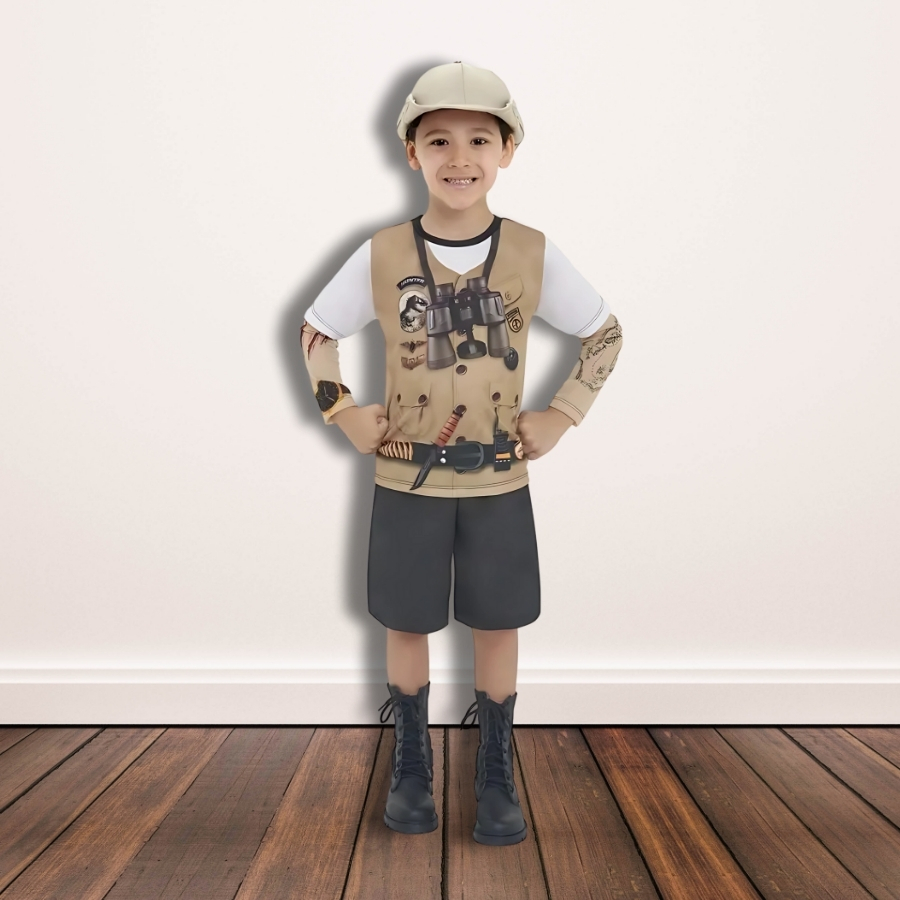 Esta fantasia é uma ótima escolha para festas temáticas, eventos de aventura ou até mesmo para um dia de brincadeiras no parque, estimulando a imaginação da criança em uma caça aos dinossauros cheia de ação e descobertas.