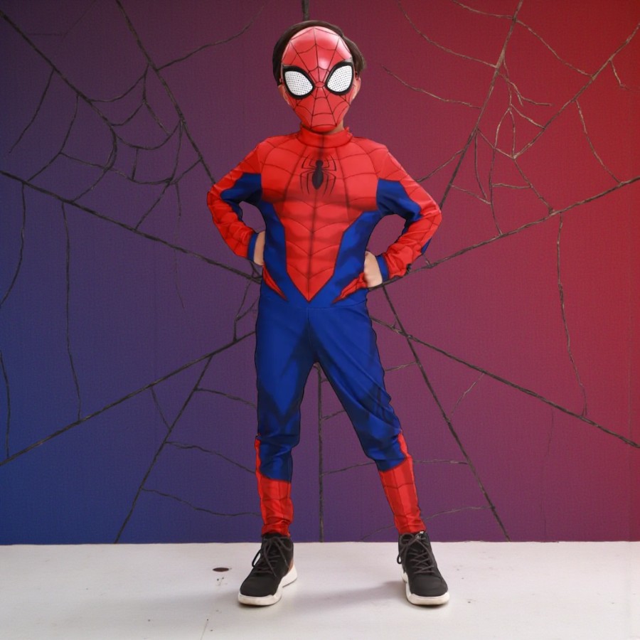 A Fantasia Infantil inspirada no Homem Aranha Disney é composta por macacão longo e máscara, formando um conjunto que completa o visual do super-herói e amplia a experiência do faz de conta. A máscara intensifica a caracterização, permitindo que a criança se sinta parte das aventuras do personagem durante as brincadeiras. Indicada para festas à fantasia, eventos temáticos e brincadeiras do dia a dia, a fantasia também pode ser utilizada como elemento decorativo em comemorações infantis. Pensada para unir beleza visual e utilidade, a peça estimula a imaginação infantil, a criação de narrativas heroicas e a interação social, conectando diversão e criatividade ao universo dos super-heróis.