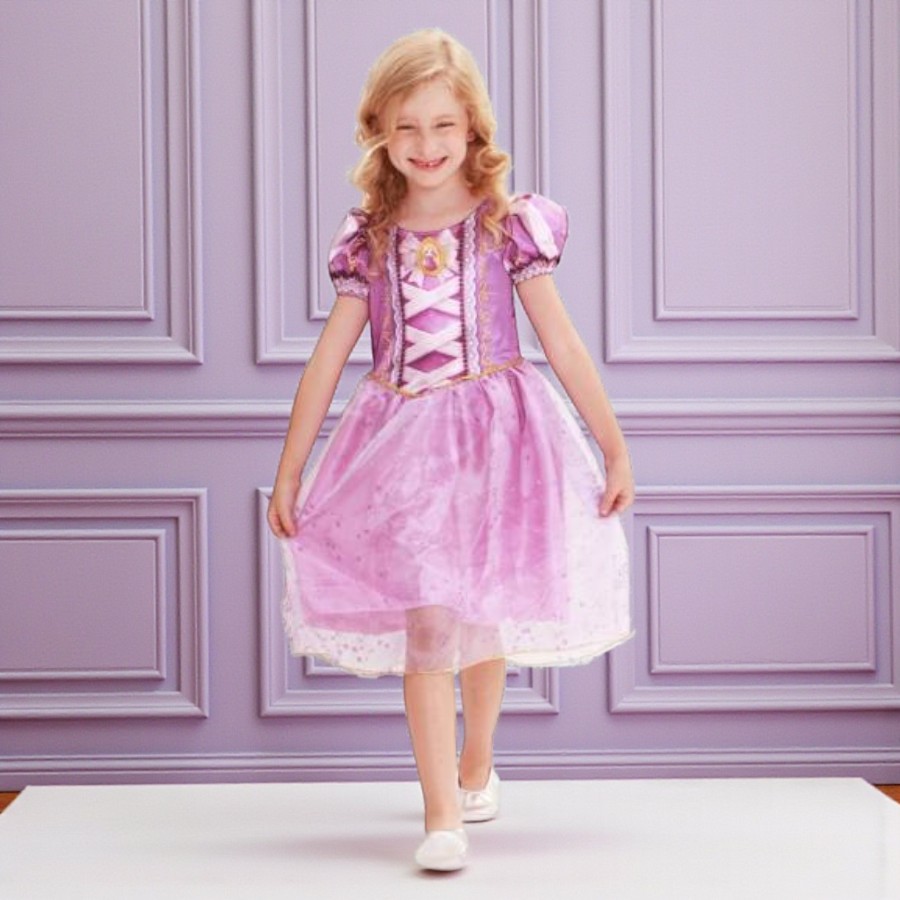 Fantasia infantil modelo vestido inspirado em Rapunzel Disney