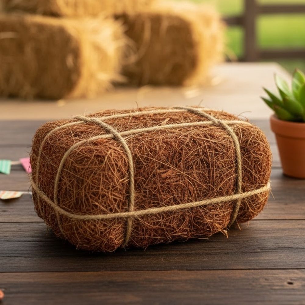Use o fardo de feno em mesas de Festa Junina, vitrines, painéis decorativos, cenários de fotos, escolas ou eventos temáticos. Pode ser combinado com bandeirinhas, espantalhos, chapéus de palha e flores secas para uma decoração ainda mais completa.