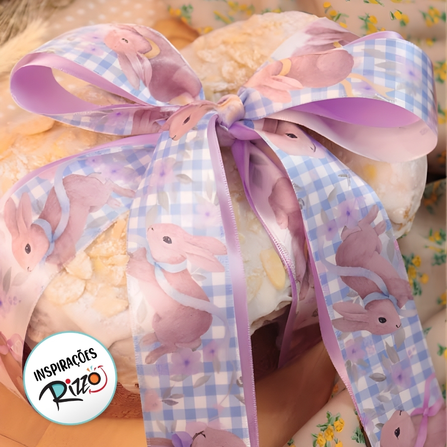 Essa fita de cetim resolve a necessidade de finalizar embalagens e projetos decorativos com um toque profissional e sazonal. A estampa de coelhos com laços xadrez azul agrega charme e identidade visual, chamando a atenção no ponto de venda e reforçando a temática comemorativa. É uma excelente opção para laços, acabamentos e composições que buscam um visual delicado e diferenciado.