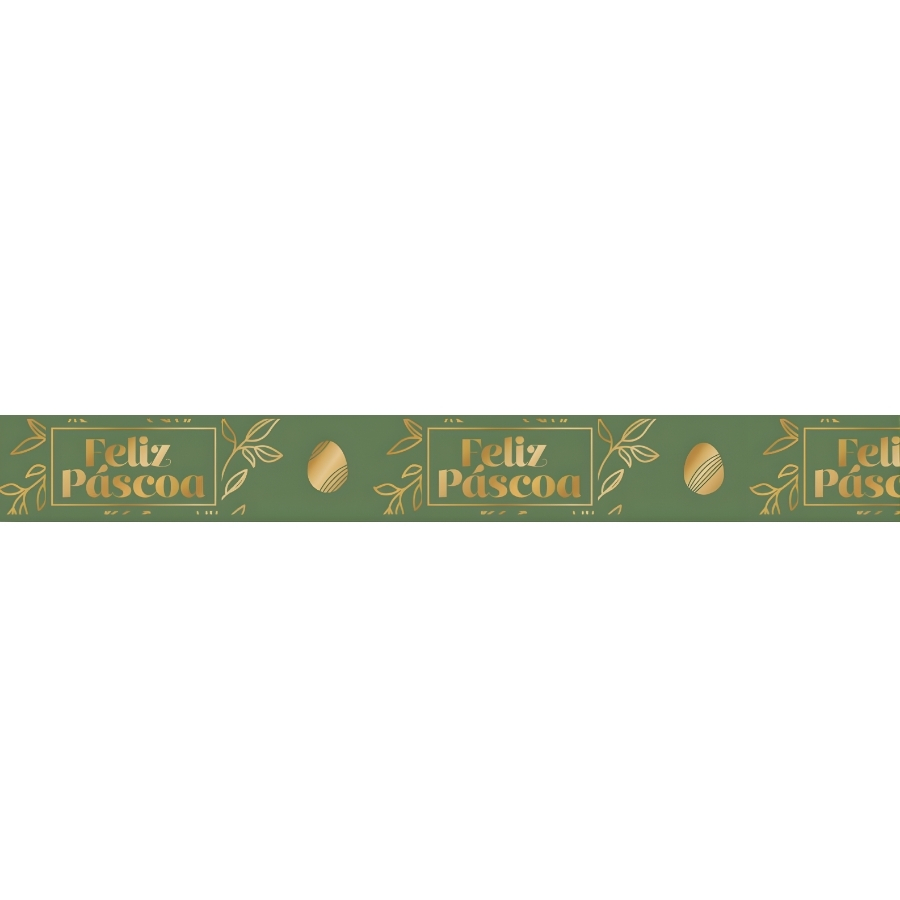 Essa fita resolve a necessidade de comunicar a temática da Páscoa de forma clara e atrativa, ao mesmo tempo em que aumenta a percepção de qualidade do produto final. A estampa Feliz Páscoa em dourado reforça a mensagem comemorativa, chama a atenção no ponto de venda e contribui para embalagens mais profissionais e valorizadas, sem exigir complementos adicionais.