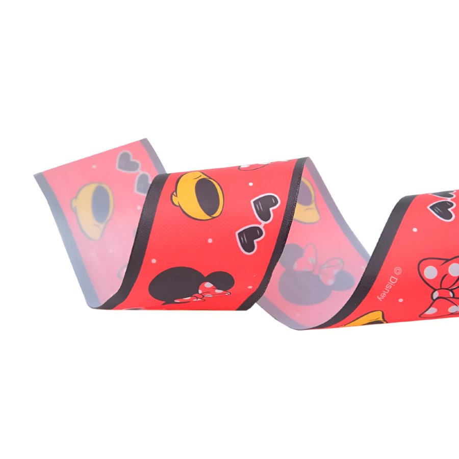 Fita decorativa estampa Minnie, cores Vermelho, Amarelo e Preto.