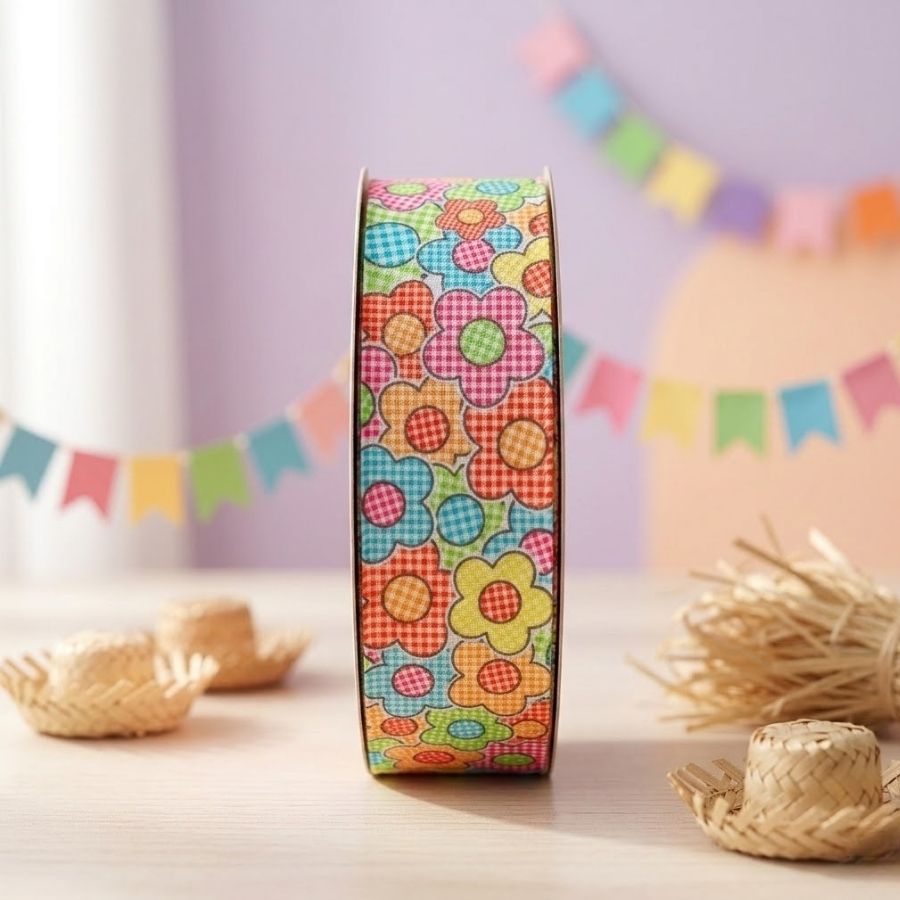 Fita Decorativa de Festa Junina - Flor Xadrez - 10m - 1 unidade - Rizzo