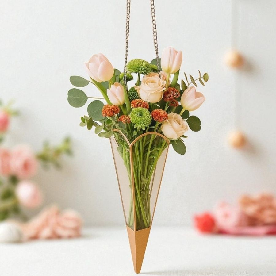 A Floreira de Plástico com Corrente 38x8cm Transparente e Rose é prática, resistente e estilosa, ideal para decorar ambientes com flores ou plantas de forma segura.