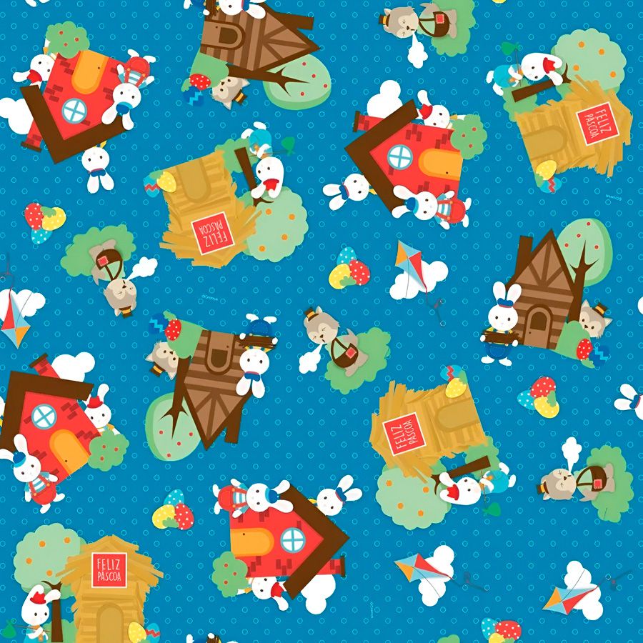 Três coelhinhos brincalhões, estampados em cores vibrantes azuis, te convidam para uma Páscoa inesquecível! Envolva seu ovo de Páscoa com essa embalagem mágica e crie um presente único, cheio de alegria e fantasia.