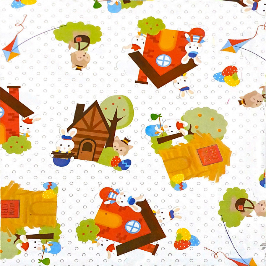Folha para Embrulhar Ovos de pascoa decorada com o tema Os 3 Coelinhos na cor branco