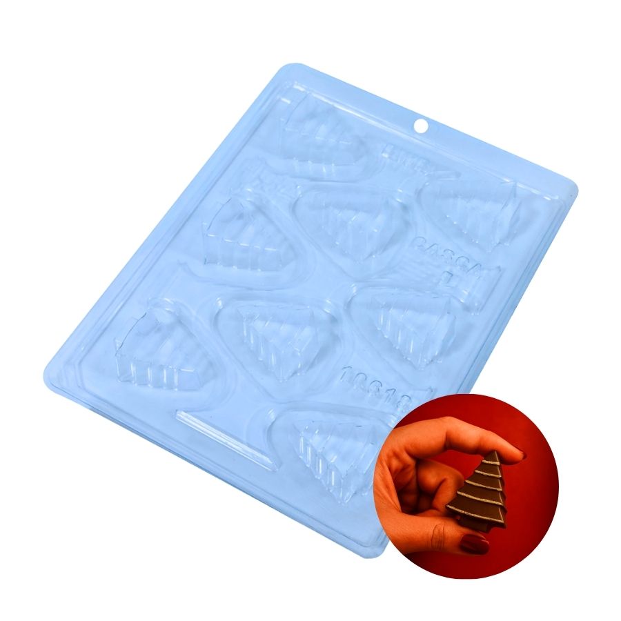 Forma especial para produzir bombons em formato de árvore de Natal, com acabamento profissional e ideal para composições temáticas e vendas sazonais.