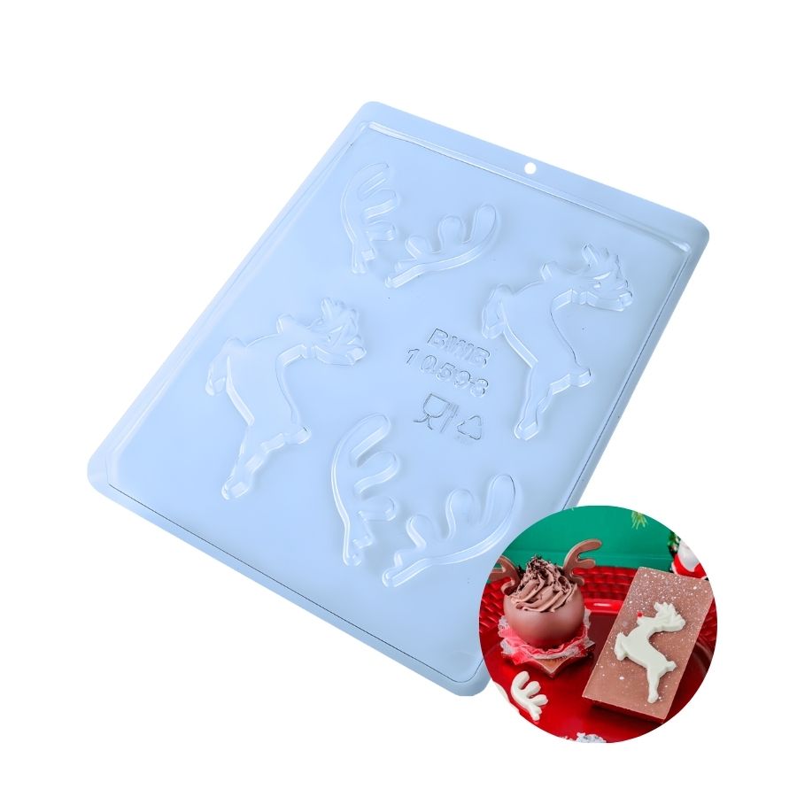 A Forma de Acetato Simples Apliques de Rena é perfeita para complementar produções natalinas com detalhes que agregam charme e valor visual. Suas cavidades criam pequenas renas decorativas ideais para aplicação em trufas, bombons, cupcakes, tabletes, panetones, embalagens temáticas e diversos doces sazonais. Uma ferramenta estratégica para quem deseja sofisticar o portfólio sem aumentar o custo de produção.