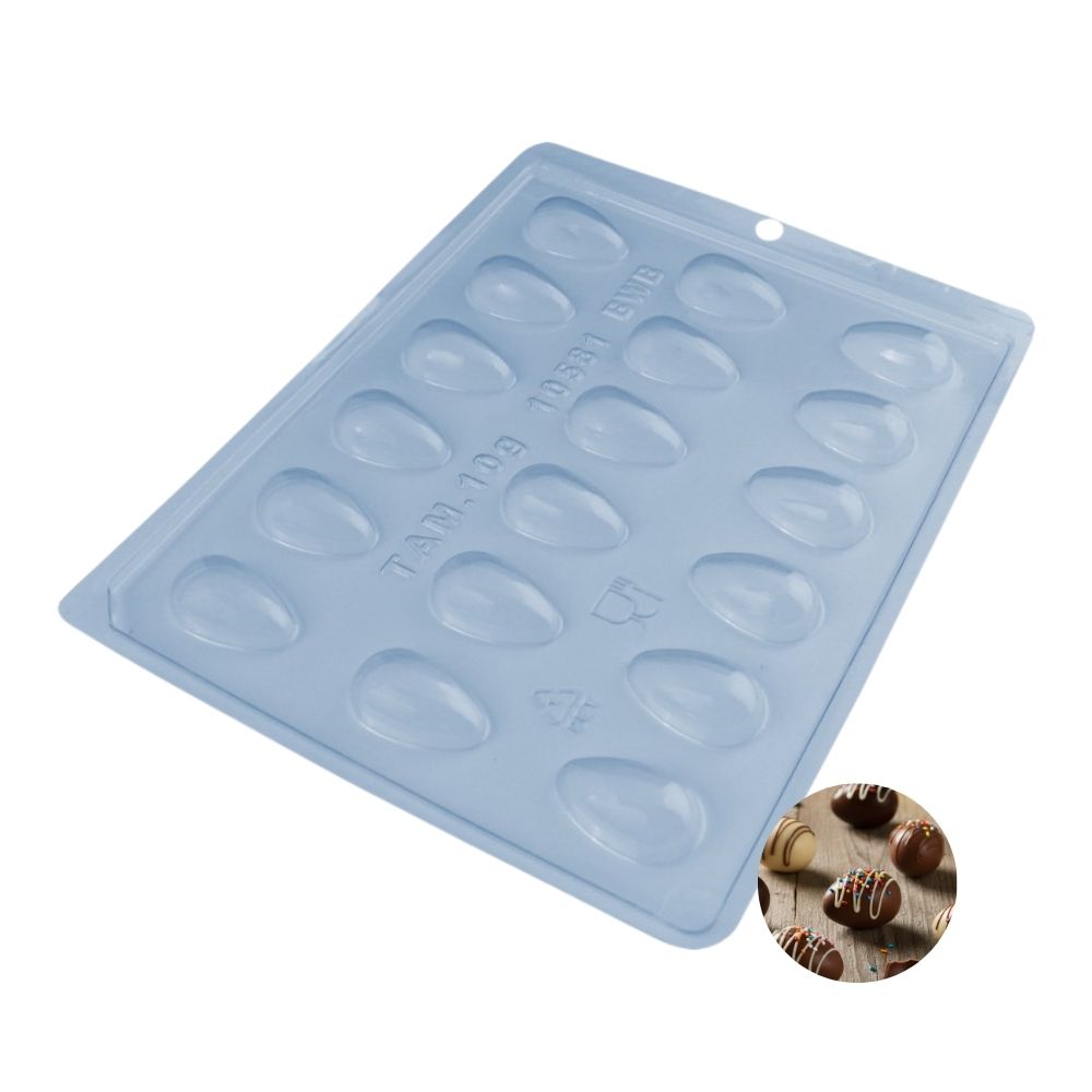 Fabricada em acetato, a forma oferece leveza, flexibilidade e fácil desmolde, permitindo que os ovos sejam retirados sem danificar o formato. É uma peça funcional para confeitaria, ideal para produções sazonais, lembrancinhas, vendas ou consumo próprio, atendendo diferentes necessidades de preparo.