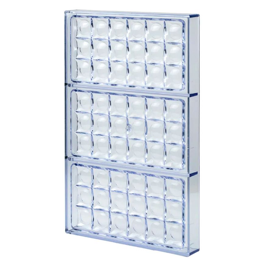 A forma de Chocolate de tabletes/barras em formato retangulares com detalhes circulares/bolhas da marca Cromus, da linha Allonsy, oferece uma maneira charmosa e eficiente de criar tabletes/barras artesanais. Com 3 cavidades cuidadosamente projetadas para replicar os formatos retangulares, esta forma permite a produção de múltiplos tabletes/barras de uma só vez, potencializando a eficiência de produção.
