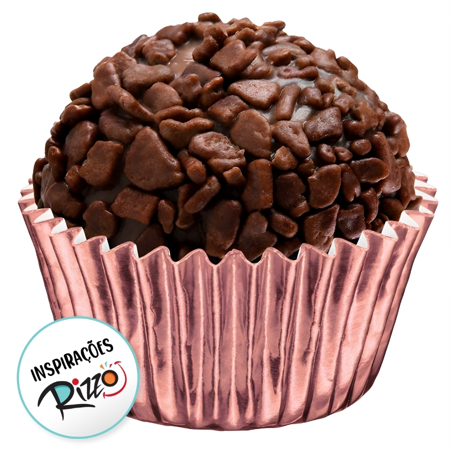 A forminha laminada para doces nº 04 possui acabamento laminado na cor ouro rose e dimensões aproximadas de 2,5x2cm. É indicada para acomodar pequenos doces, auxiliando na organização, padronização e valorização estética das produções de confeitaria.