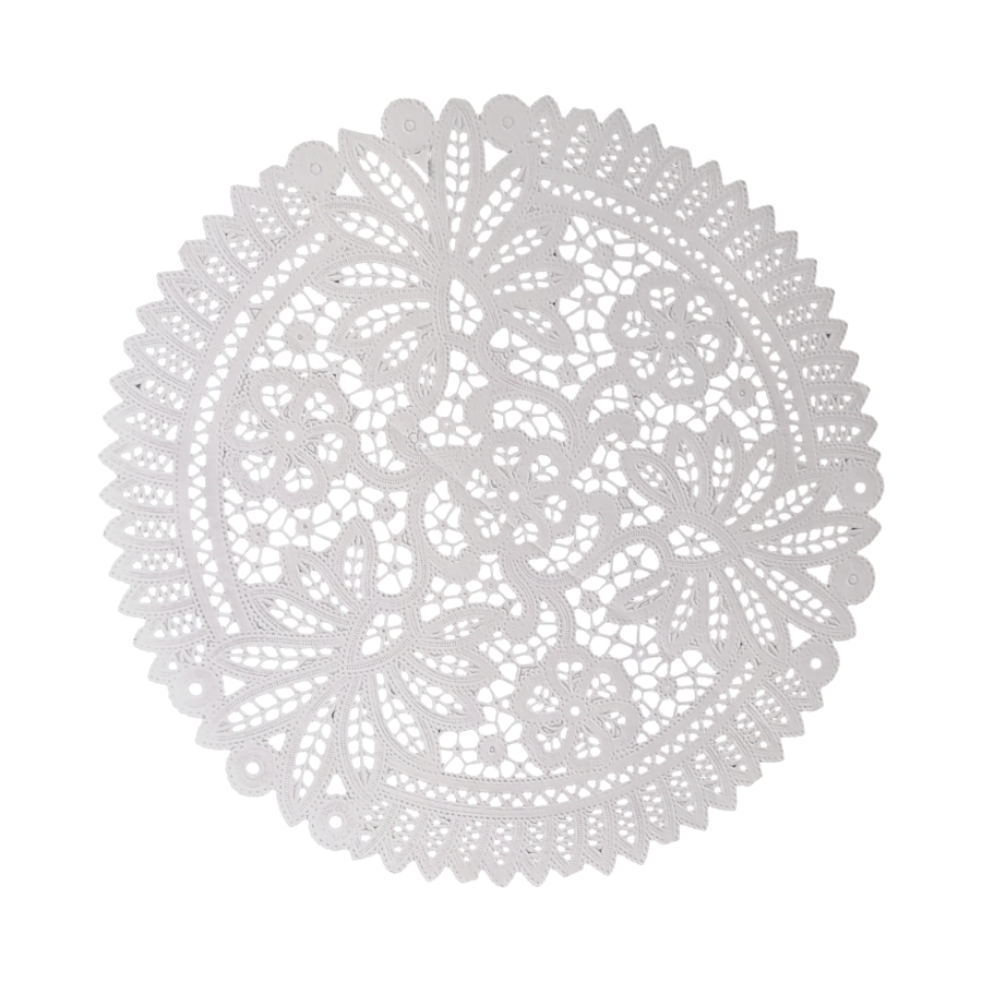 O fundo rendado é fácil de usar e descartável, garantindo praticidade na montagem e limpeza da mesa, além de realçar suas criações culinárias com um toque clássico e decorativo.